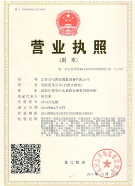 江蘇三毛教儀成套設備有限公司是一家集設計、生產、銷售、售后為一體的大型制造企業。坐落于風景秀麗的花木之鄉、全國經濟百強縣、國家級經濟開發(fā)區沭陽縣永嘉路。